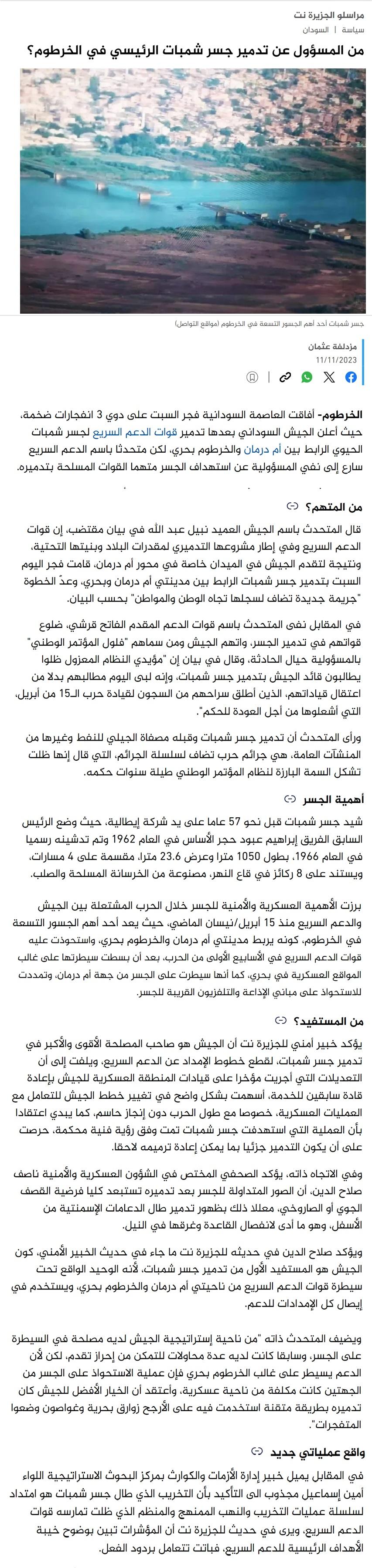 Re: تسريب صوتي خطير يؤكد تدمير الجيش لكبري شم� (Re: منتصر عبد الباسط)