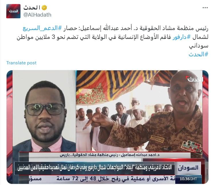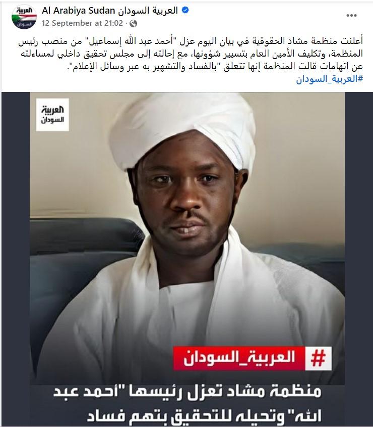 واضافت المنظمة ان أحمد عبدالله إسماعيل تم القبض عليه عقب بلاغات تقدم بها بعض الناشطين في محاربة الهجرة غير الشرعية عقب تداول تورطه في قضايا تهريب بشر من خلال استغلال منظمة شباب من أجل دارفور.