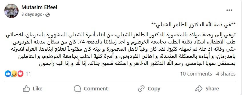 من هو د. الطاهر الشبلي الذي بكاه مجتمع جامعة الخرطوم والمجتمع الطبي بالأمس؟!