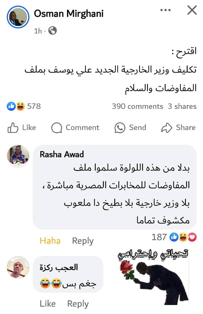 ما كتب عثمان ميرغني ورد رشاعوض عليه !