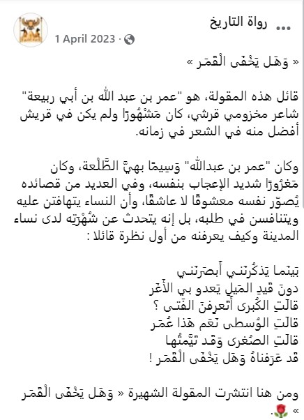 المنشور كان عن مقولة ... « وَهَـل يَخْفَى الْقَمَـر »