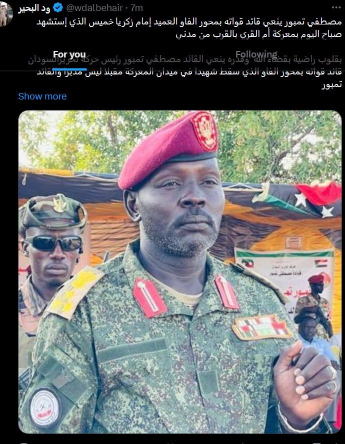 أمس تمبور قاعد يتشوبر في منصات التواصل بأنهم علي بعد 20 كيلوامترات من مدنى!