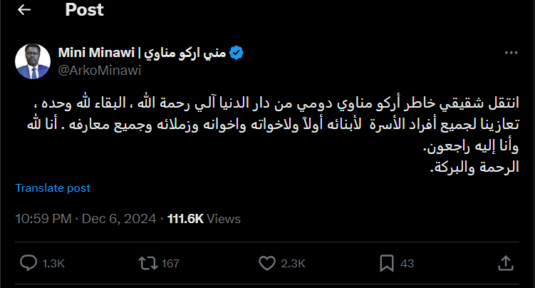 نعم رحل من قبل في شهر يونيو الماضي الشقيق الأصغر لمناوي، عباس أركو مناوي.