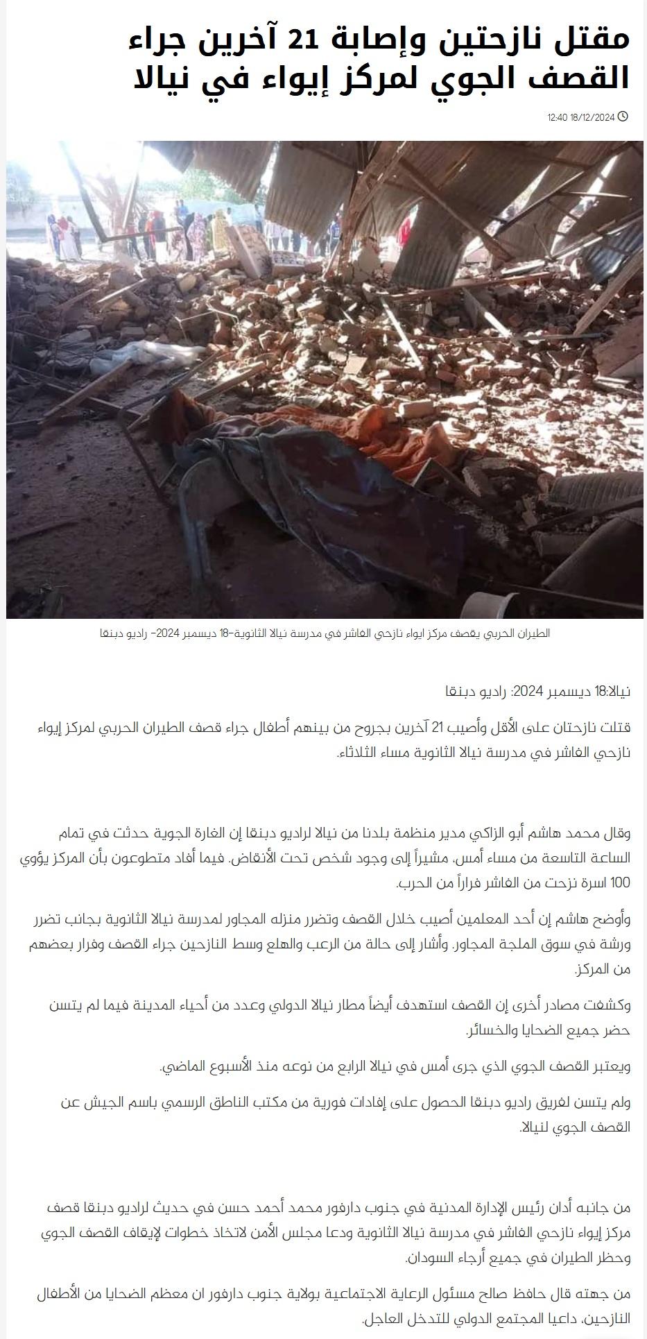 الناشط جدو موسي .. يقول أن المدرسة تأوي النازحين من الفاشر .. حواضن منى مناوي والجيش يعرف المعلومة ويضربهم حتى بعد فرارهم من الفاشر.