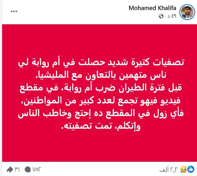 Quote: المرصد السوداني الوطني لحقوق الإنسان @SnohrSd يواصل الجيش السوداني و المليشيات الإرهابي برفقته في ارتكاب سلسلة الإنتهاكات بحق المدنيين في مدينة روابة في ولاية شمال كردفان