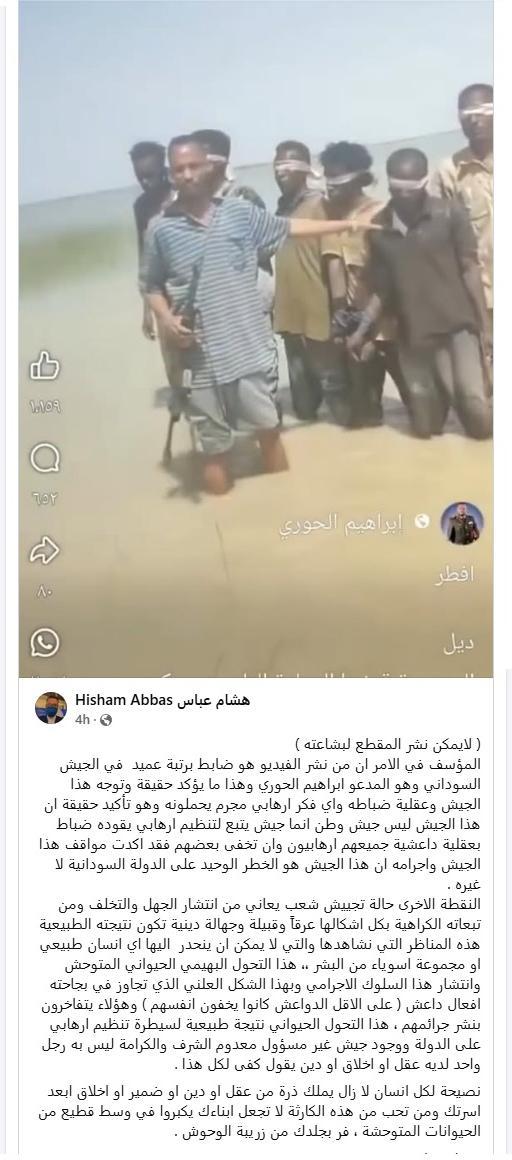 سلام شيخ قصي للاسف الجيش عندو فكرة كاملة عن هذه المذابح ولم يحرك ساكنا اطلاقا وفي النهاية راح تجيء علي رقبة الجيش وقادة الجيش والجرائم هذه في النهاية يتحملها الجيش كمؤسسة وهنا تكمن الخطورة....