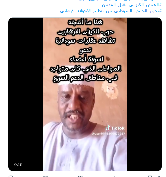 Quote: Rasha Awad [2 أبريل] رحمة الله على وليد عابدين الذي توفي بعد اعتقال دام ستة اشهر في معتقلات الدعم السريع عانى فيه تعذيبا وتجويعا ظهرت آثاره المروعة في فيديو مسجل قبيل وفاته. فقده خسارة موجعة بحق! وفقده بهذه الطريقة يجعل الوجع مضاعفا! تبت ايادي من نكل به. هناك الالف لقوا ذات المصير وللاسف غالبيتهم ابرياء اعتقلوا بالشبهات بواسطة استخبارات الد.عم السريع. كان الله في عون كل اسرة لها معتقل لدى استخبارات الد.عم السريع او استخبارات الجيش، فقد صدر تقرير من الامم المتحدة عن مراكز الاحتجاز في الخرطوم التابعة لطرفي القتال ورصد التقرير بالتفصيل ممارسات وحشية ضد السجناء لدى الطرفين: ممارسات متشابهة بل متطابقة: تعذيب وتجويع ومعاملة قاسية واحتجاز في اماكن غير صالحة. |
