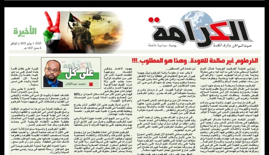 الخرطوم غيرُ صالحةٍ للعودة- مقال بصحيفة تصدر في بورت كيزان