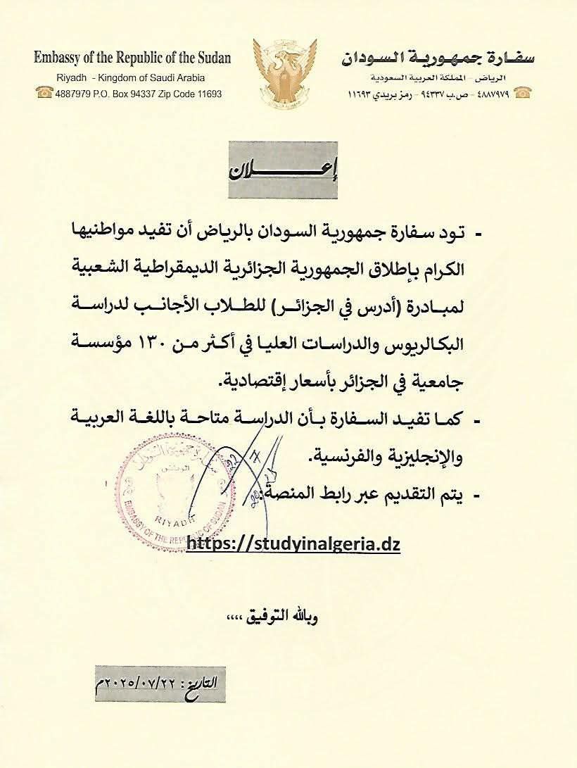 سفارة السودان بالرياض تعلن عن مفاجأة للطلاب
