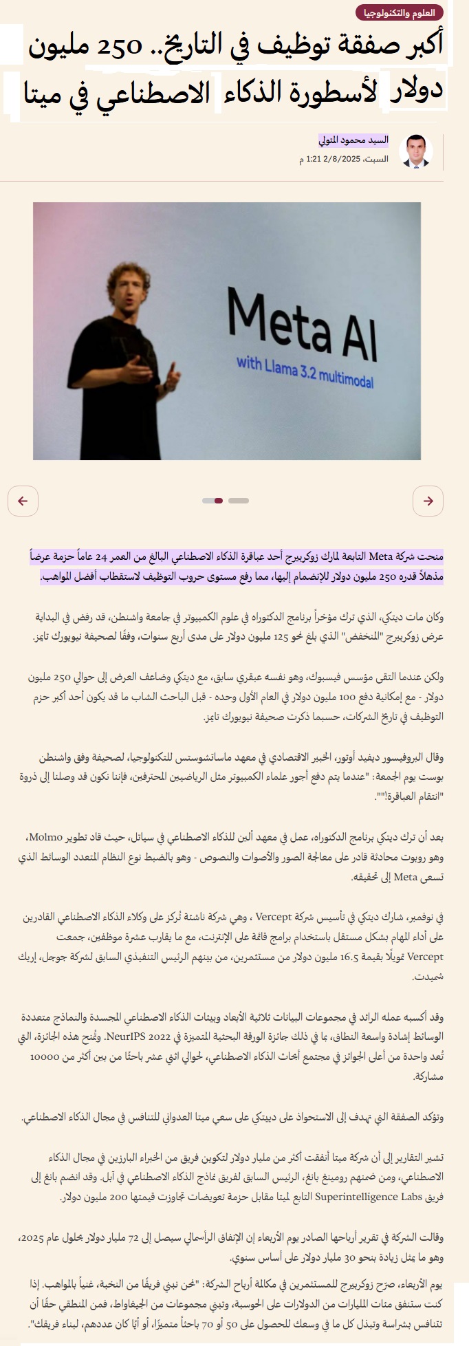 أكبر صفقة توظيف في التاريخ.. 250 مليون دولار لأسطورة الذكاء الاصطناعي في ميتا