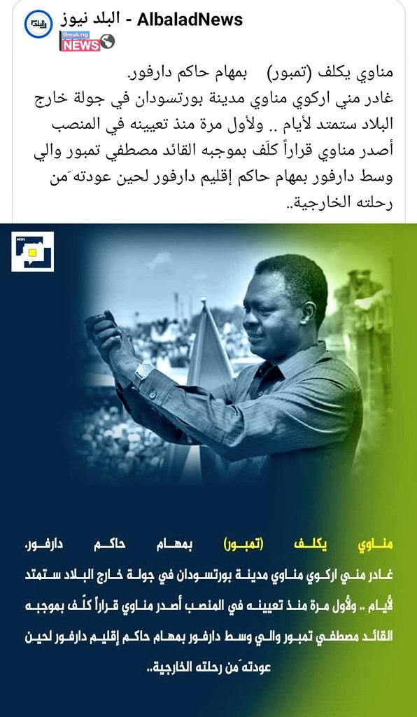 مناوي يكلف تمبور كحاكم دارفور، ويتهيا لمغادرة بورتسودان-ستان