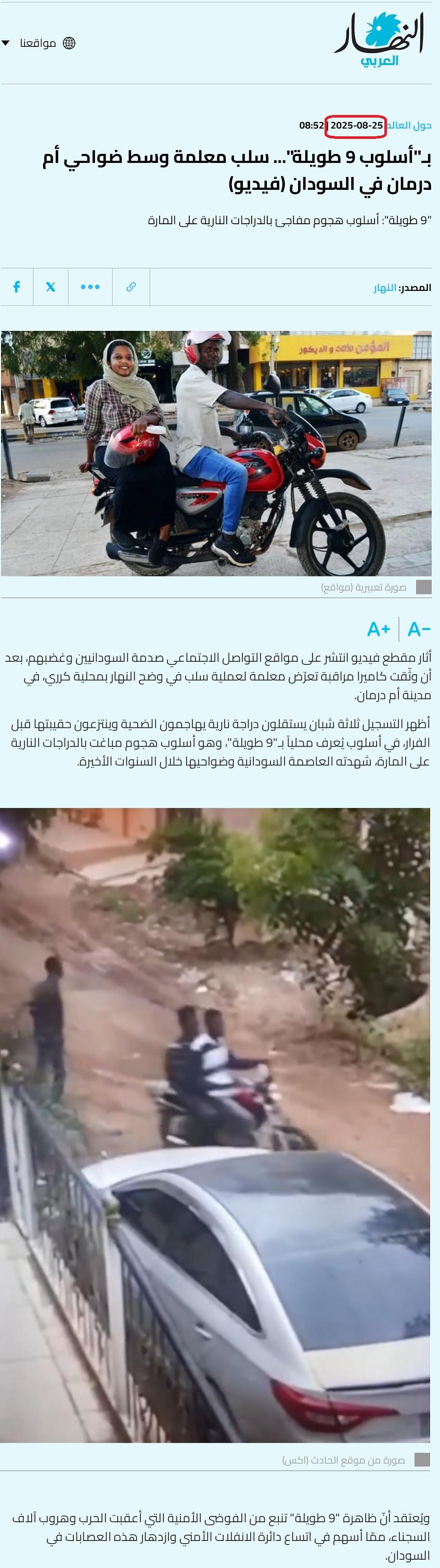 ار الفيديو المتداول على منصات التواصل الاجتماعي لجريمة نهب مسلح في أمدرمان – حي الوادي – جدلًا واسعًا حول الغرض من إعادة نشره في هذا التوقيت، حيث تبيّن أن الحادثة تعود إلى مايو الماضي لا أغسطس كما روّج ناشروه.
