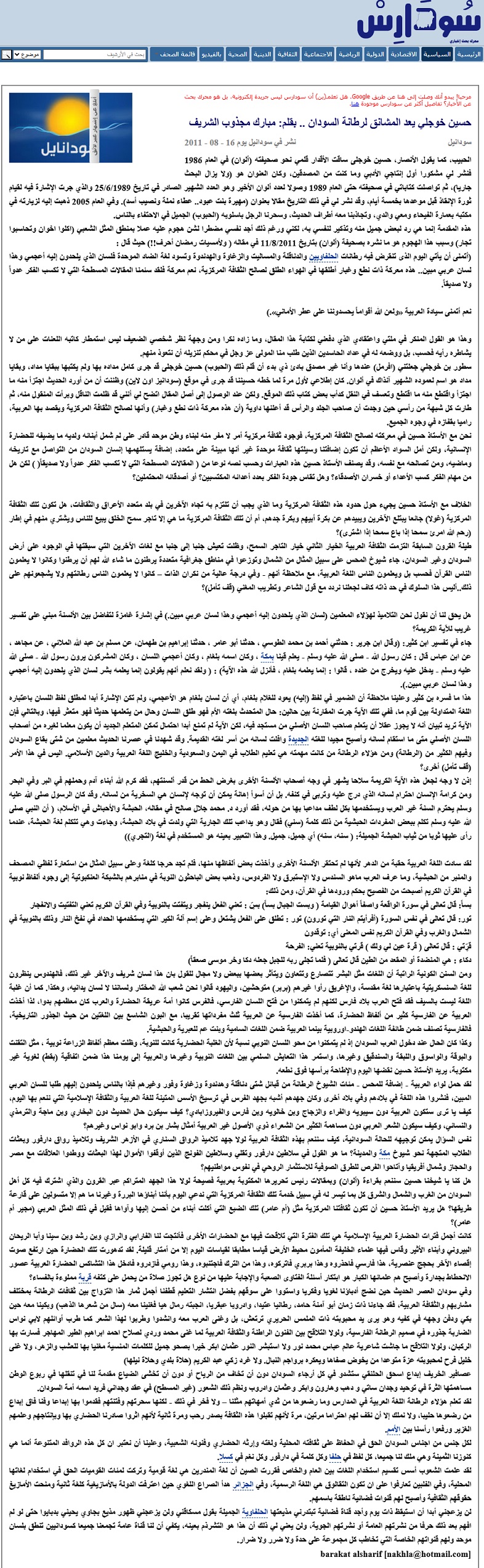 يا عبد الصمد مدخلك من الاول قائم على (غرض) اسقاط واضح لخلافك مع بشاشا ، انا دخلي شنو في ما بينكم من خلاف كان بالإمكان تقول رأيك في موضوع البوست ليكون محل احترام مهما اختلفنا حوله بدل كلامك ده عندك معاي شيء قولو دوغري برضو