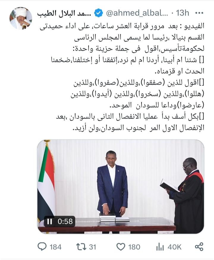 Re: محمد حمـدان دقلـو يؤدي اليمين الدستورية � (Re: زهير ابو الزهراء)