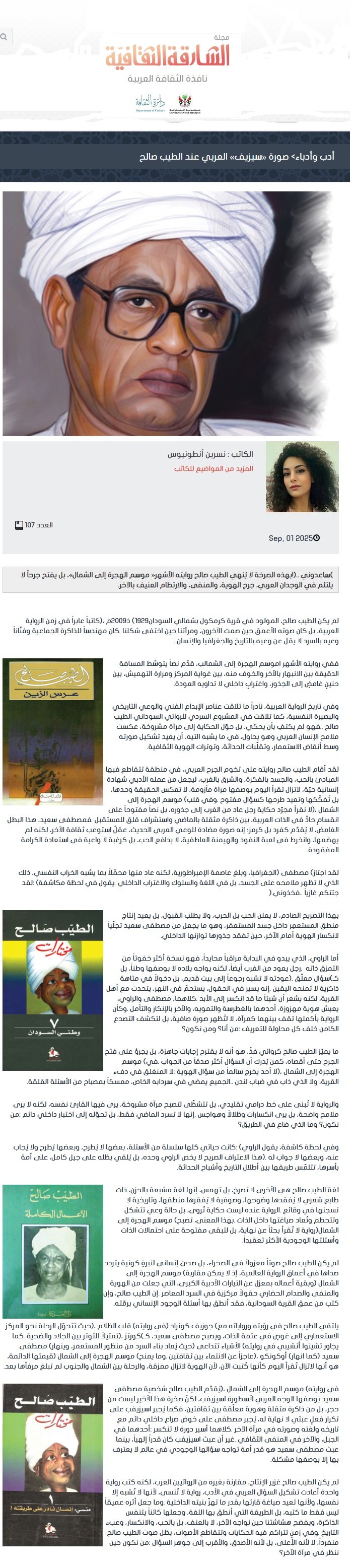 "الشارقة الثقافية" تتناول إبداعات الطيب صالح