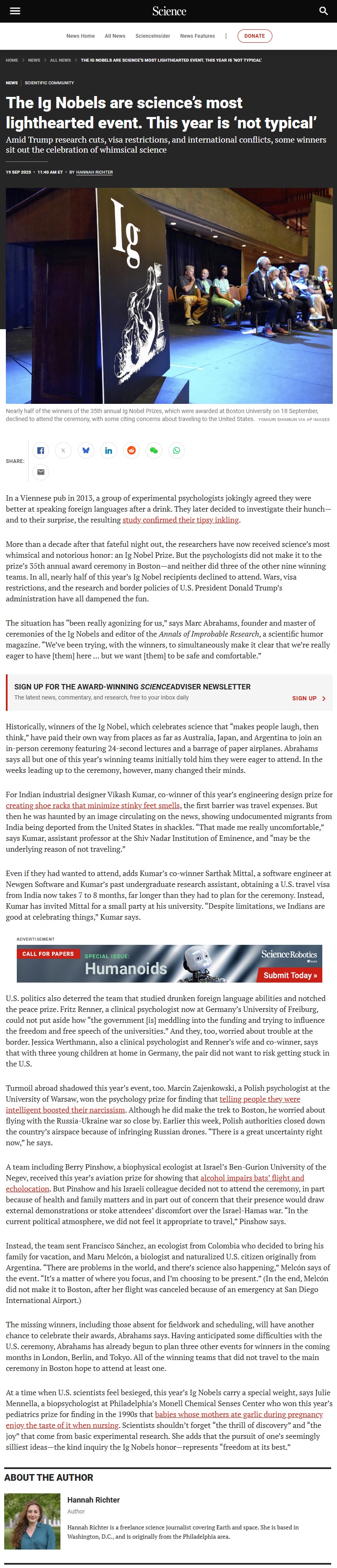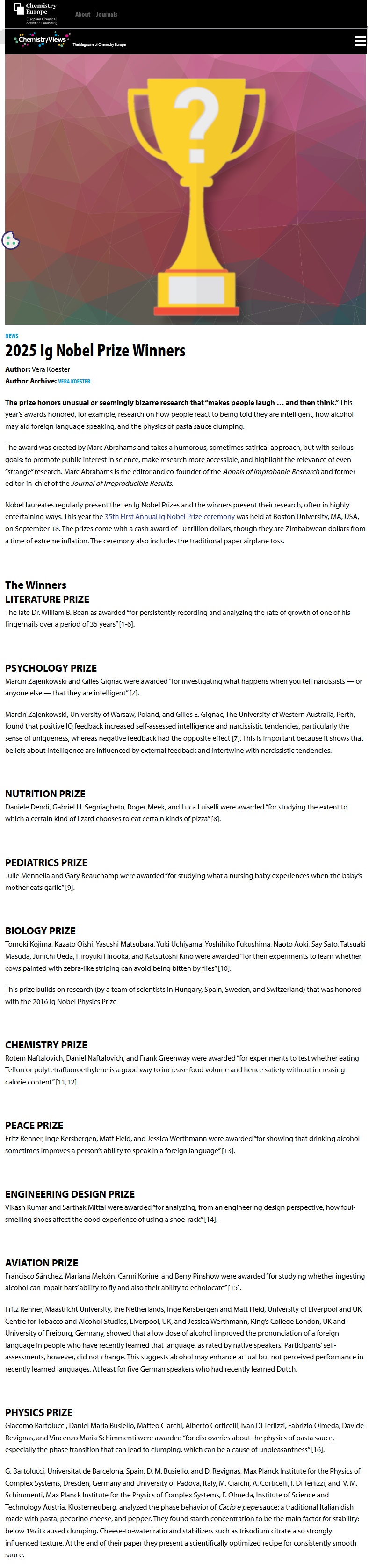 جوائز “إيج نوبل” للحماقة.. تكريم الدراسات الغريبة في حفل بمدينة بوسطن
