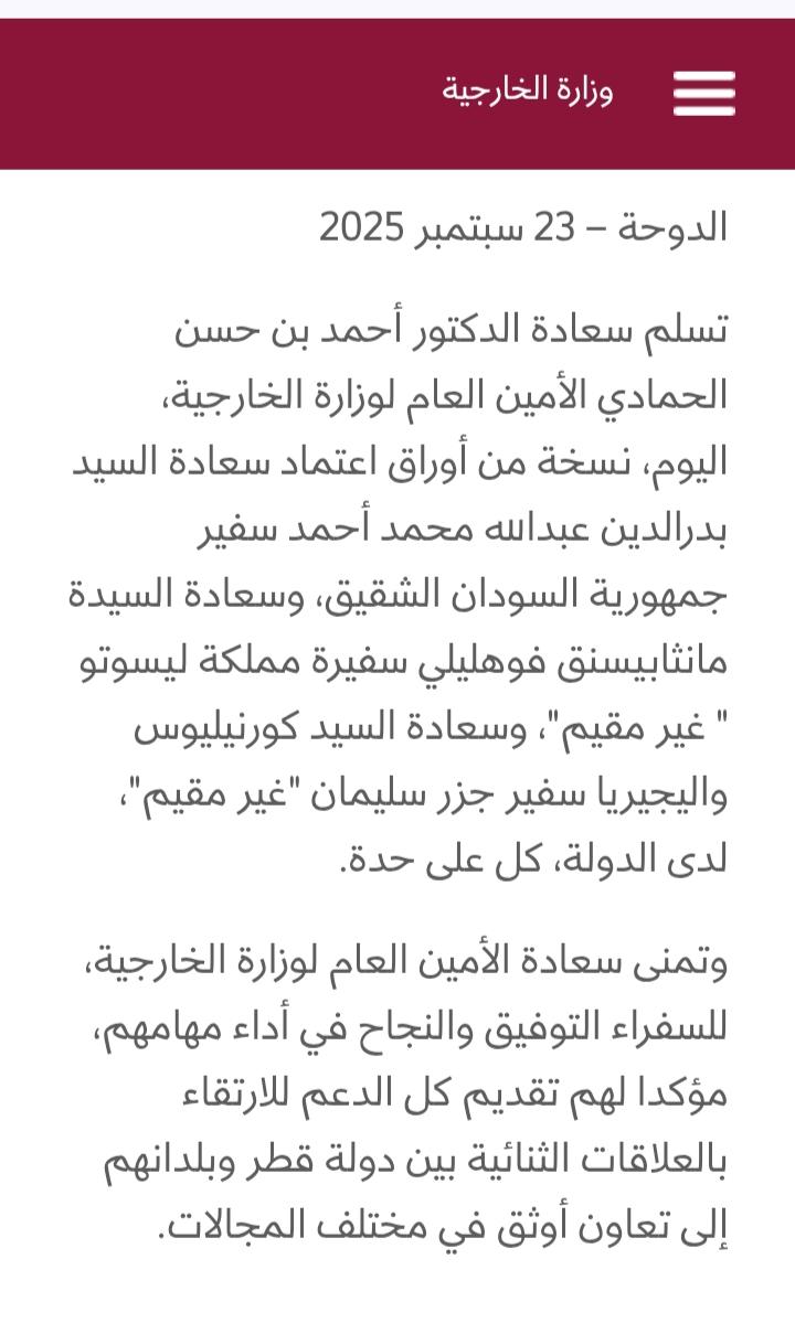 اليوم ودع السفير بدر الدين عبد الله ، البرهان متوجها إلى العاصمة القطرية الدوحة ..وقصة السفير بدر الدين مع قطر من غرائب القصص . في 19 أبريل 2019م اتخذ الفريق محمد حمدان دقلو ،نائب رئيس المجلس العسكري الانتقالي يومها قراراً باقالة السفير بدر الدين الذي كان يومها ،وكيلاً لوزارة الخارجية والقائم بأعمال الوزير فيها والسبب هو محاولة السفير تخفيف تداعيات الخطأ الكارثي بامتناع المجلس العسكري من استقبال الشيخ محمد ابن عبد الرحمن آل ثاني وزير الخارجية ونائب رئيس مجلس الوزراء القطري بعد تحليق طائرته في الجوً.محاولة السفير هي إدلاؤه بتصريح صحفي قال فيه إن العلاقات السودانية -القطرية ممتازة وان الوزارة الان تعد لزيارة وفد رفيع من الحكوم القطرية إلى السودان . التصريح اغضب حميدتي فعجل بطرد السفير بدر الدين من الخارجية ،،من بعد ذلك أراد من بيد التقلبات أن تستقبل الدوحة سعادة السفير وتوجد له وظيفة مرموقة في الديوان الأميري .وتدور الأيام ويعود بدر الدين إلى الخارجية ويعاد تعيينه سفيراً للسودان بدولة قطر ..فسبحان الذي بيده التقلبات .