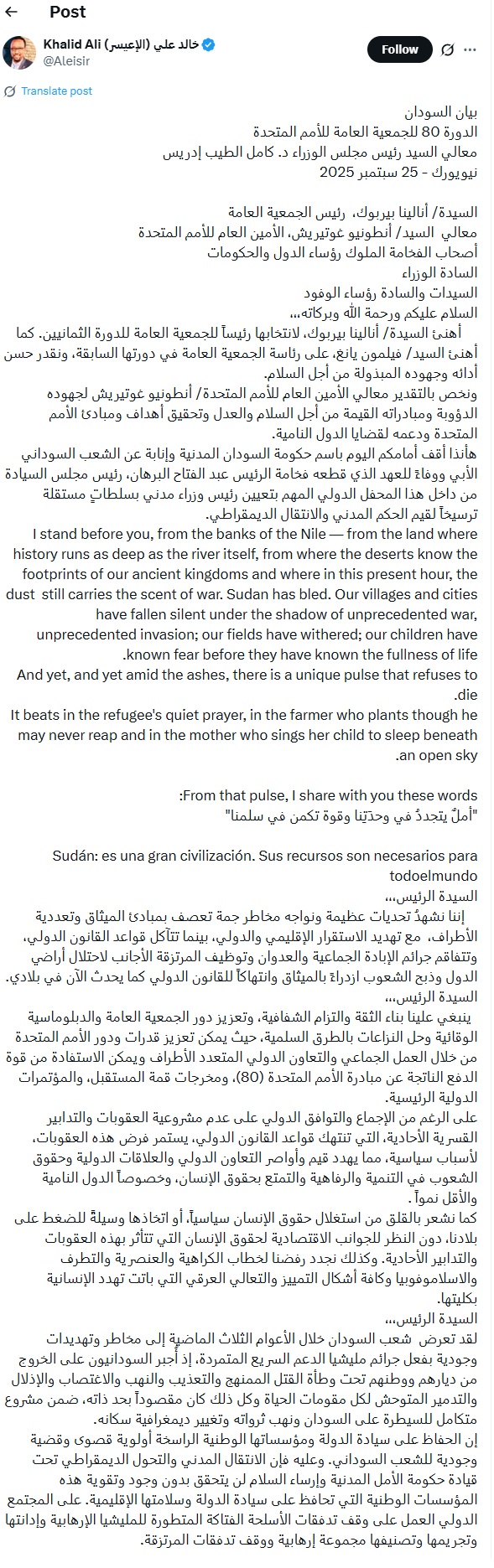 خطاب رئيس الوزراء الدكتور كامل إدريس امام الجمعية العامة للأمم المتحدة