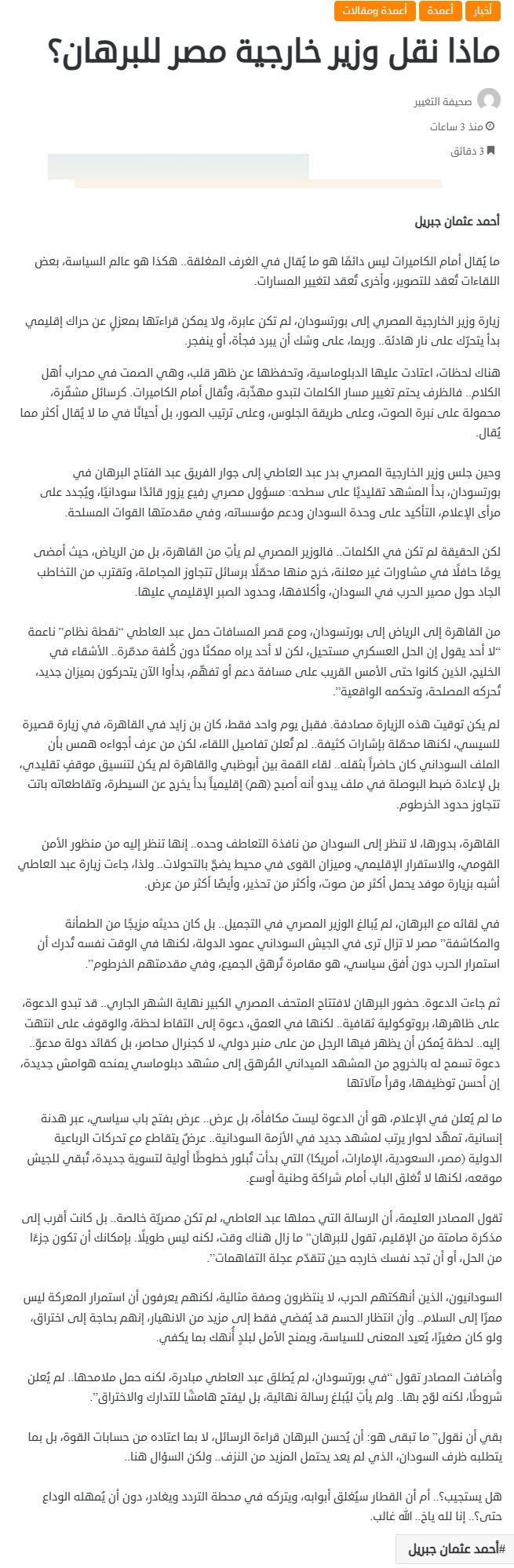 البرهان الان يا حليف في وضع سيء للغاية خصوصا قرات بوست لسياسي في اكس ان اخونج تركيا خلاص فقدو الثقة في البرهان يعني فعلوا خاصة كراهية البرهان وفعلا كان في صحفي جاء في قناة طيبة الاخوانجية ينتقد البرهان بشكل عنيف وقوي