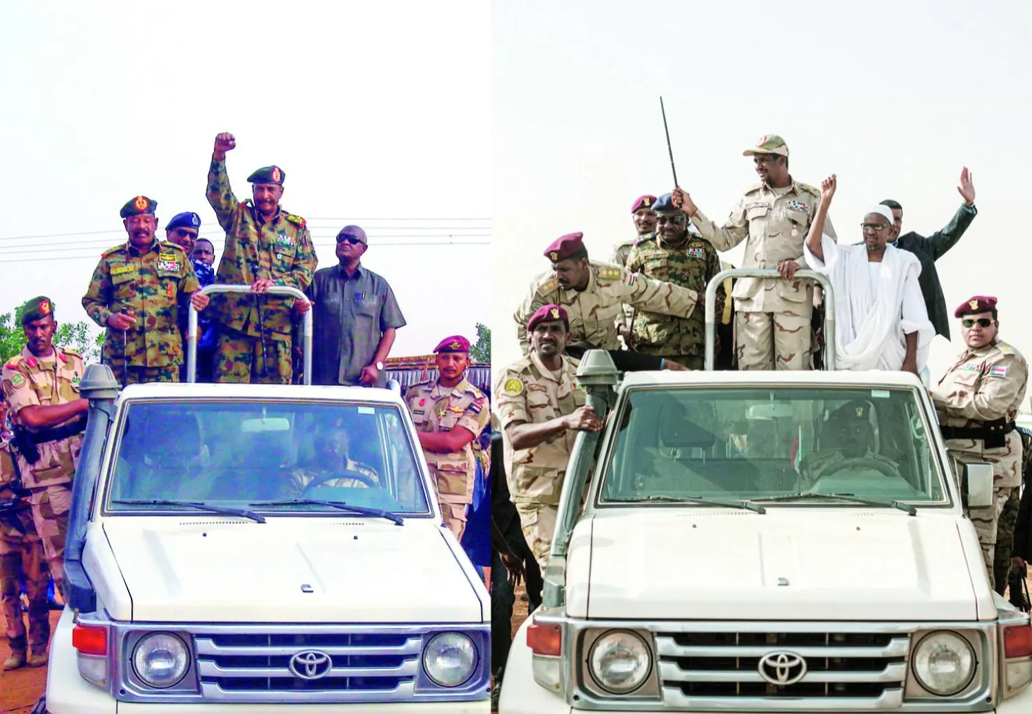 البرهان وحميدتي خلال تعاونهما لإطاحة نظام البشير وقبل أن يتقاتلا في الحرب الحالية (أرشيفية - أ.ف.ب)