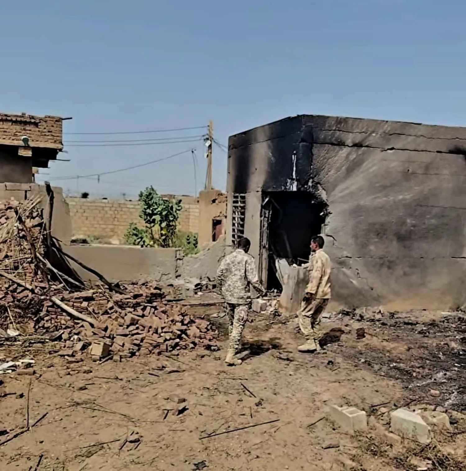 آثار الدمار الذي لحق بمنزل طبيب تعرض للقصف في منطقة «عد بابكر» بولاية الخرطوم (فيسبوك)
