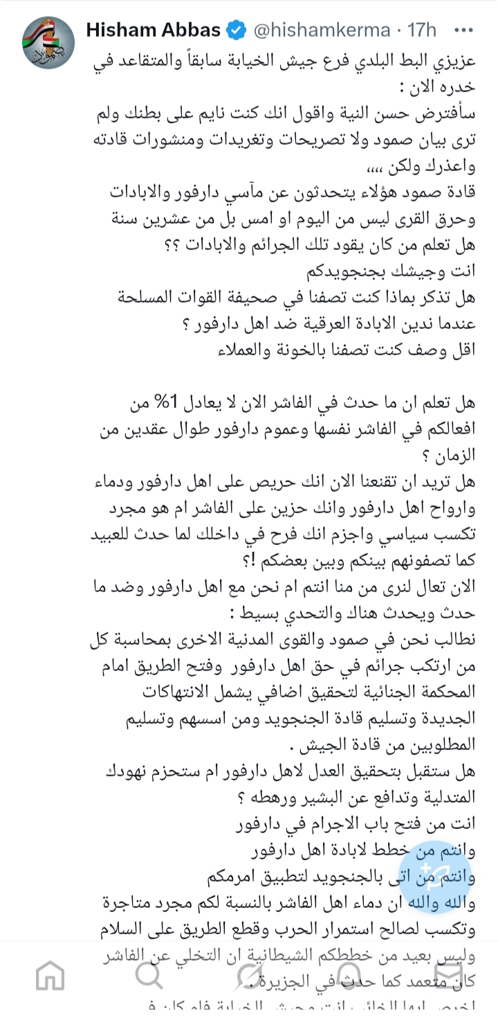 ما ارتكبوه من جرائم في دارفور على مدار عقدين من الزمان يفوق ما ارتكبه اي جيش قمعي