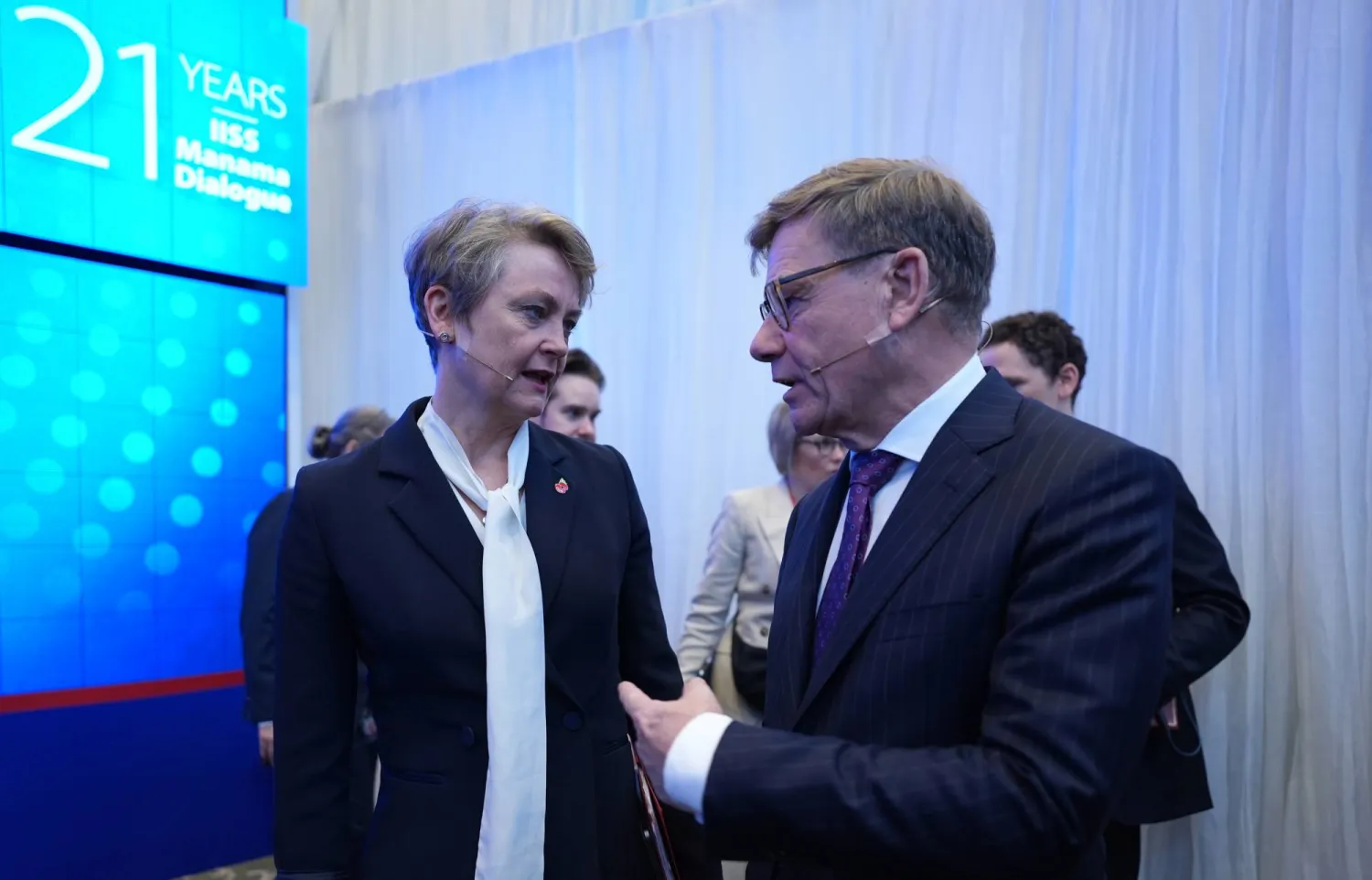 وزير الخارجية الألماني يوهان فاديفول (يمين) وإيفيت كوبر وزيرة الخارجية والكومنولث والتنمية في المملكة المتحدة لبريطانيا العظمى وآيرلندا الشمالية (د.ب.أ)