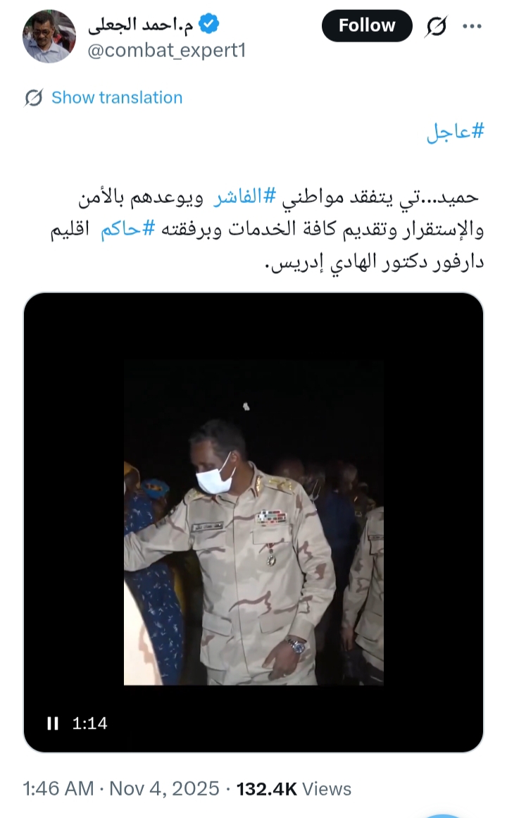 Re: حميدتي يتفقد مواطني الفاشر برفقة حاكم إقل (Re: حيدر حسن ميرغني)