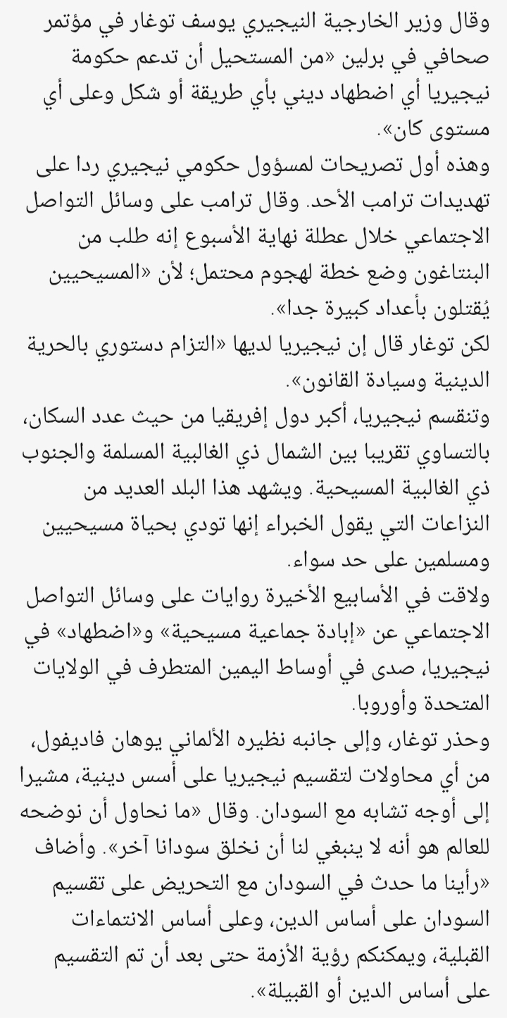 بقينا مضرب مثل .. وزير خارجية نيجيريا: لا ينبغي لنا خلق سودان آخر في بلدنا