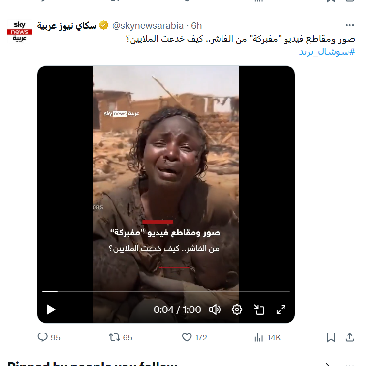 بعد مرور اقل من أسبوع فقط تساقطت أوراق التوت التي كانت يتغطى بها الكلابسة من الكيزان وبعض اليساريين الكيزان العنصريين صور نشرتها جامعة يال انها انتهاكات صارخة اتضح فيما بعد انها صور لمواشي تقبع تحت الأشجار فيديوهات قصيرة مدتها ستين ثانية او اقل اتضح انها مزيفة وملفقة علما ان هذه الفيديوهات حققت مشاهدات عالية جدا في ساعات قليلة شخصيا بصفتي زول كان بنتج مئات الافلام القصيرة بغرض الدعاية لمنتجاتي الخاصة في احدي متاجري الاون لاين لم يستغرق مني الامر اقل من عشر ثواني لاكتشف ان الفيديو مضروب في حنانو. سنعرض بعضها .... نواصل...