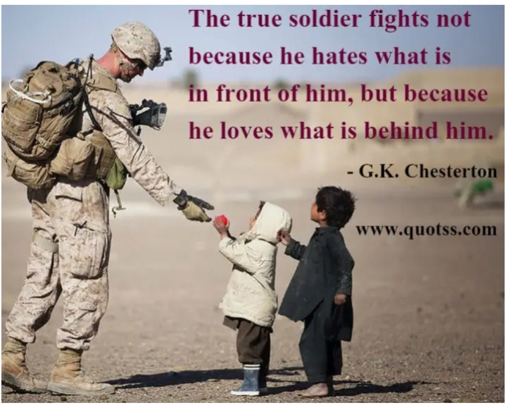 الجندي الحقيقي لا يقاتل لأنه يكره ما امامه (عدوه) بل لانه يحب ما وراءه