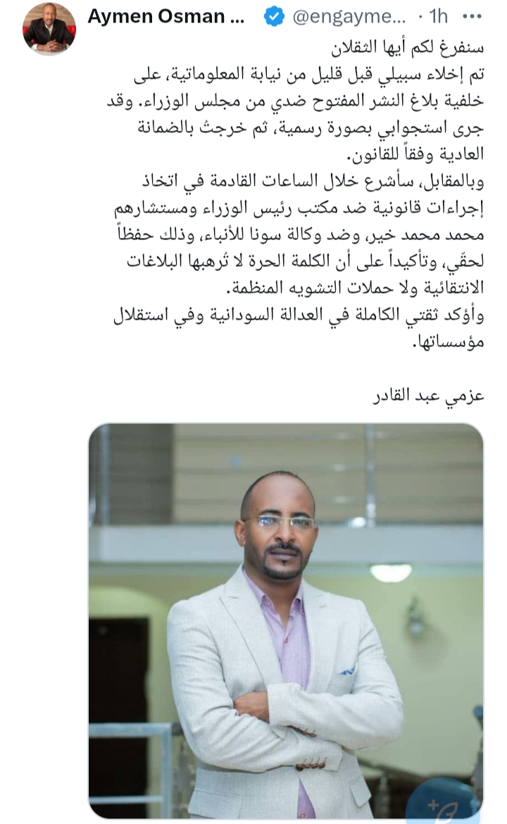 تخيل ده واحد من مستشاري رئيس الوزراء (اونلاين) كمان تاريخه يحدث عن نفسه. ، متسلق انتهازي منبطح ناكر جميل عاصرت فترة وجوده مع المعارضة في القاهرة قبل هجرته لكندا ضمن برنامج اعادة التوطين كان يطبل للكل في صحيفة الخرطوم التي كانت تصدر من القاهرة آنذاك من يتنكر ويشتم اصدقائه غير جدير بالاحترام . ربنا يهديه ويشفيه من علله النفسية والجسدية