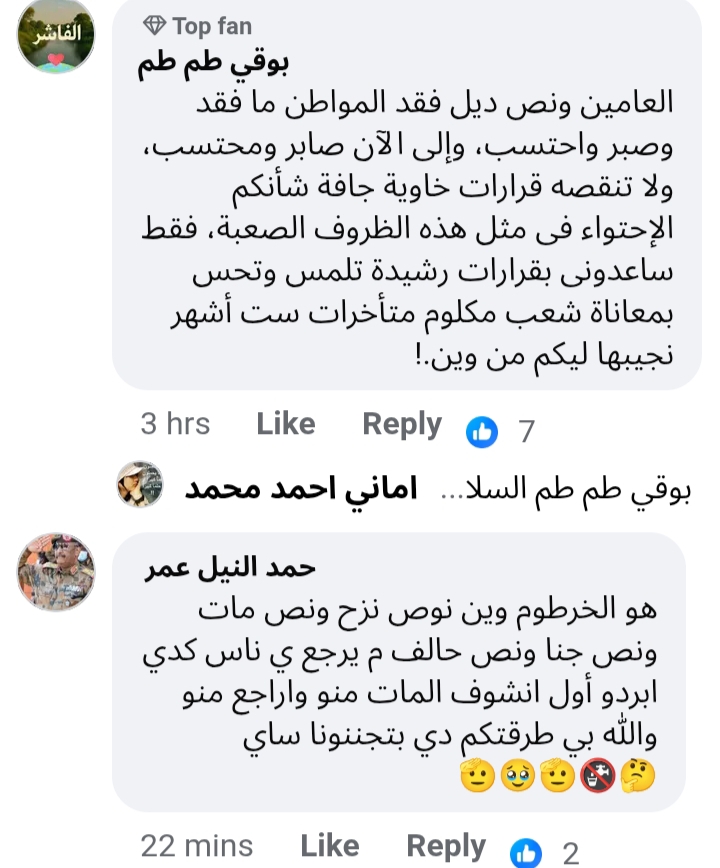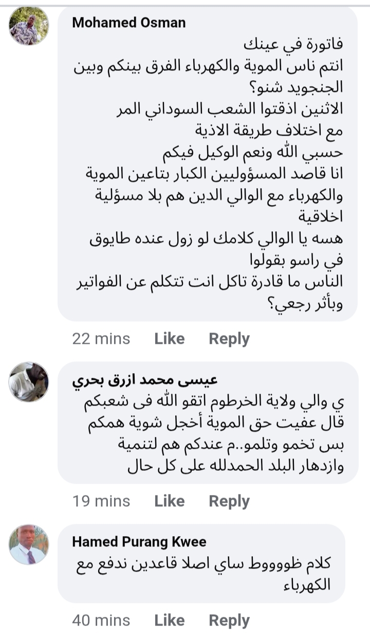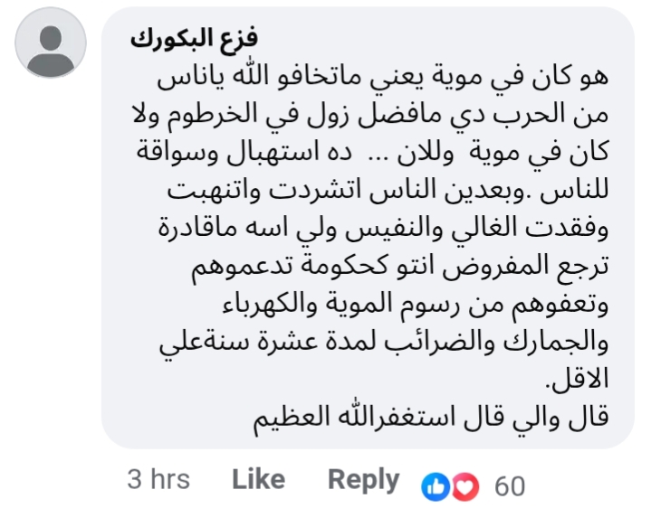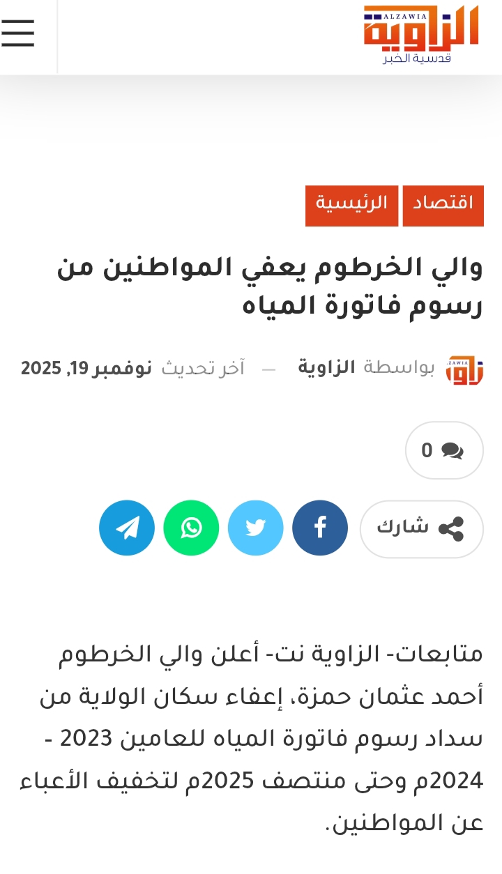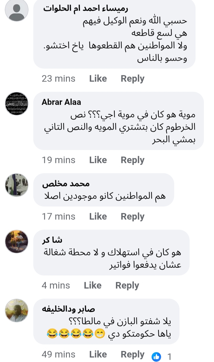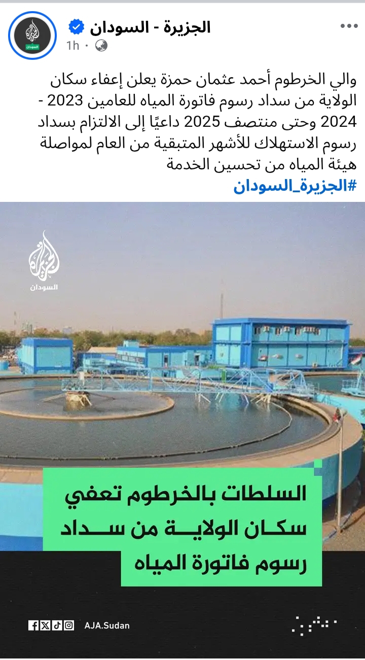 إذا كان في إستهلاك حقيقي للمياه خلال عامي ٢٣ و٢٤ طوالي تحاسب الكدايس. ياخي انت ذاتك في الفترة المذكورة دي ما معروف كنت وين. المهم ناسك ما بقصروا... أكيد سننوا اقلامهم وتأبطوا الفواتير وجاك بلا يا مواطن ما تدفع .. نقطع.. ما عندنا شغل بكلام الوالي. اصلا دي حركات عهدناها من زمن الجبايات السقطت حجركم