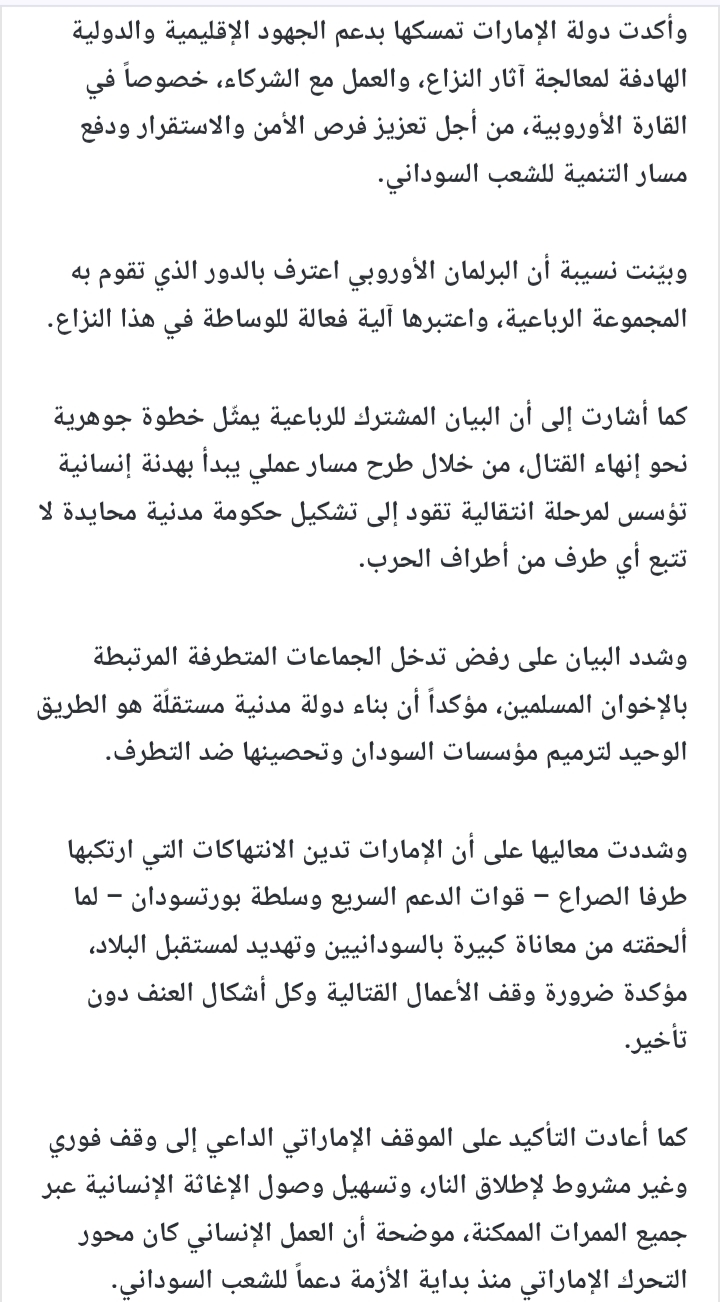 حتى البرلمان الأوروبي جر واطي من الإمارات بشان تورطها في الإبادة الجماعية في السودان