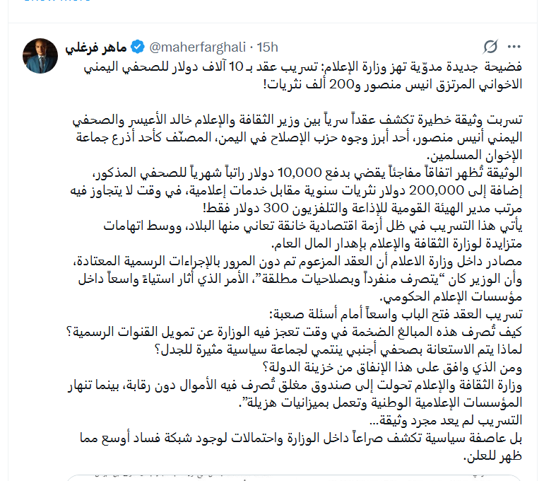بينما أنتم تكافحون برواتب زهيدة، تتعاقد الحكومة سرا مع إعلاميين خارجيين بمبالغ فلكية لتبييض انتهاكاتها.