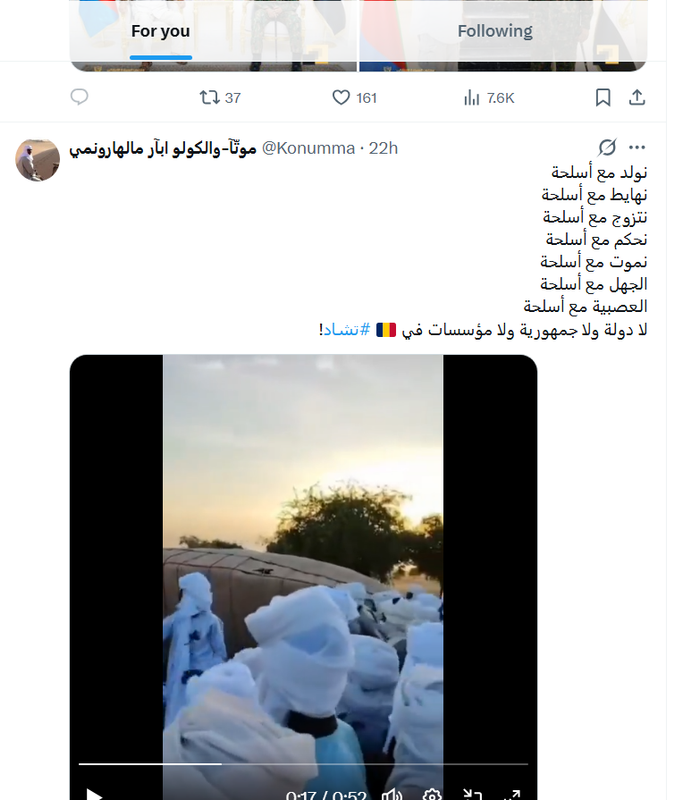 شايف امس في تشادي مستنير انتقد الفيديو موضوع النقاش ووصف مروجوه بالكذابين واقحامه قسرا في الصراع الدائر في البلد