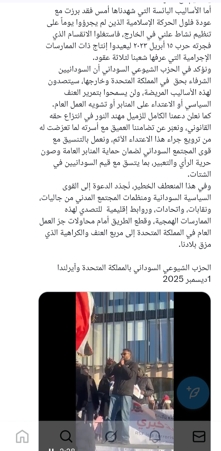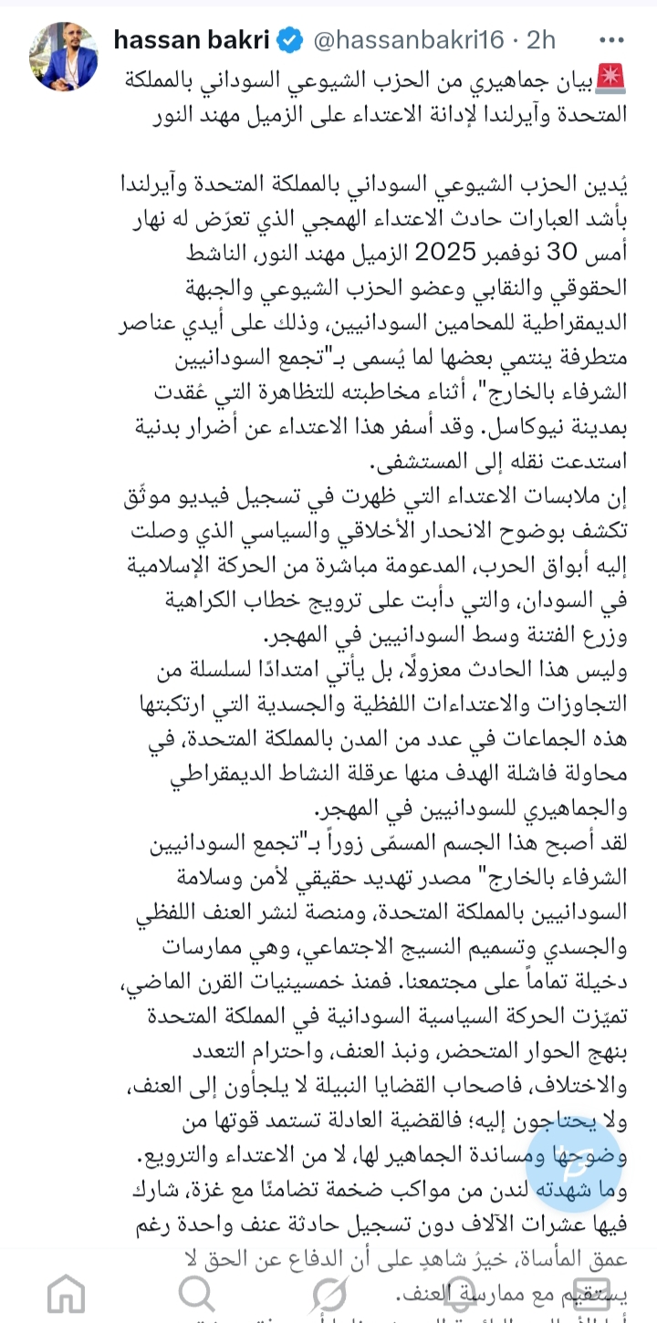الحزب الشيوعي السوداني بالمملكة المتحدة وآيرلندا يدين الإعتداء على الزميل مهند النور