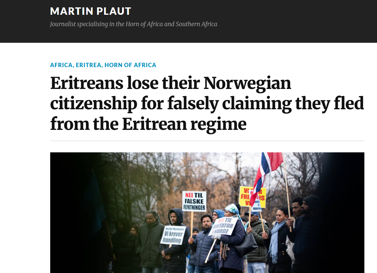 | Quote: Eritreans lose their Norwegian citizenship for falsely claiming they fled from from Eritrean regime. |