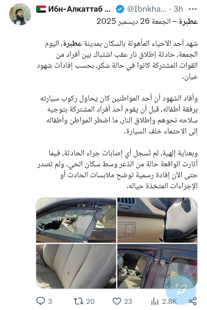 اشتباكات بعطبرة تُصيب فردين من القوات المشتركة وتُثير ذعر المواطنين