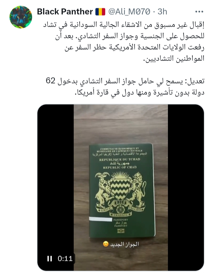كذلك في ترانزيت في مطار سنغافورة وجدت ٣ سودانيينن متجهين لامريكا بجوازات سفر تشادية .