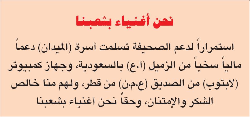 Title: تبرعوا : لصحيفة(الميدان)... دعما لها لمواصلة رسالتها التأريخية .