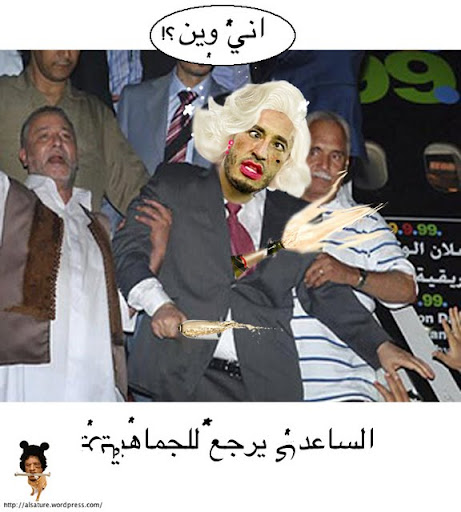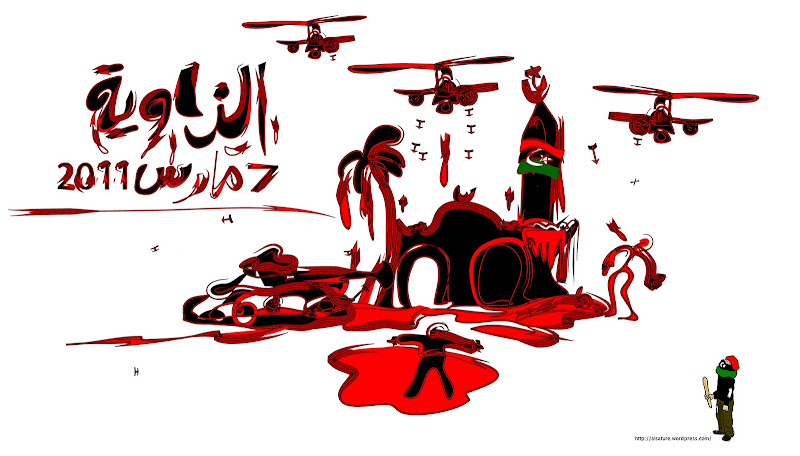 خروج ولي العرش/ سيف الإسلام القذافي ببيانه العجيب وقوله أن ليبيا ليست مثل تونس ومصر... كلام ترجمه النظام بعد سويعات لأبشع جرائم العصر.. الطائرات الحربية تقصف المواطنين العزل.. واثناء تشييعهم للشهداء.. اوقع النظام مجاذر في تاجوراء وبنغازي بصورة لم يسبق لها مثيل في العالم..