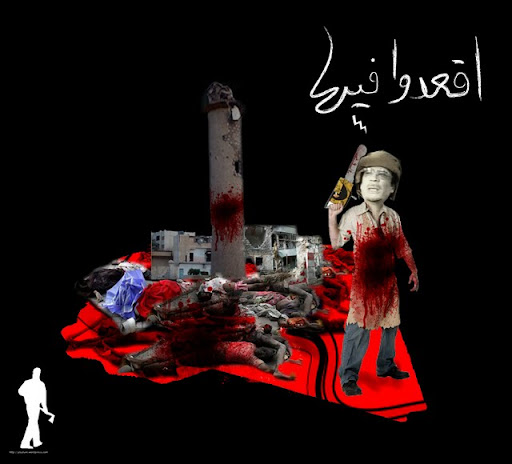 نعم أنه يريد ان يثبت للعالم أن ليبيا (نظامه) ليس مثل تونس ومصر.. فهو أتى بشئ جديد.. أبتكر وابدع.. فقصف المتظاهرين العزل بالطائرات..