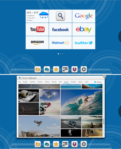 بصراحة إنه التطبيق المفضل لدي ، حيث يتيح لك مجموعة من التطبيقات تماما كويندوز 8 ،فَلِوَهْلَة أظن أني في غنا عن واجهة ويندوز 8 ، بكل بساطة هذه الواجهة أكثر ديناميكية حيث توفر لك تحديثات المواقع التفاعلية ، إضافة إلى إمكانية إضافة تطبيقات اختصار لمواقعك المفضلة ....ومجموعة من خيارات التحكم الرائعة . أتركك لإكتشافها فهي سهلة الإستعمال .