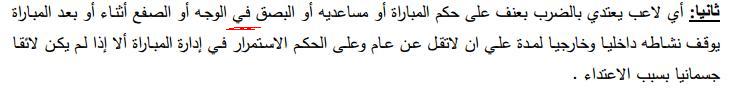 النص واضح جدا و هو يعاقب اللاعب فقط و ليس الفريق... لكن لجنة الاستئنافات لو فى الف نص كانت سوف تمنح نقاط المباراة للمريخ