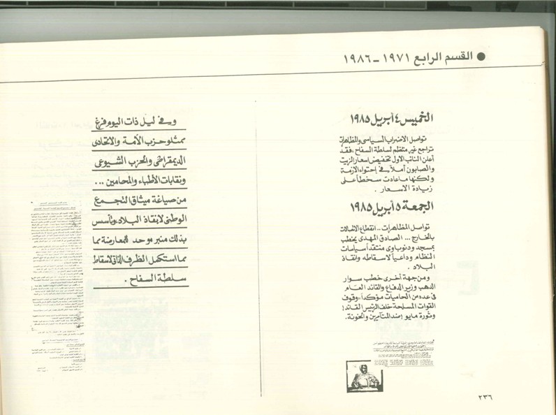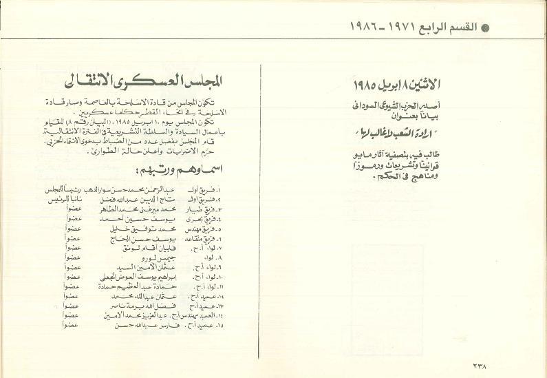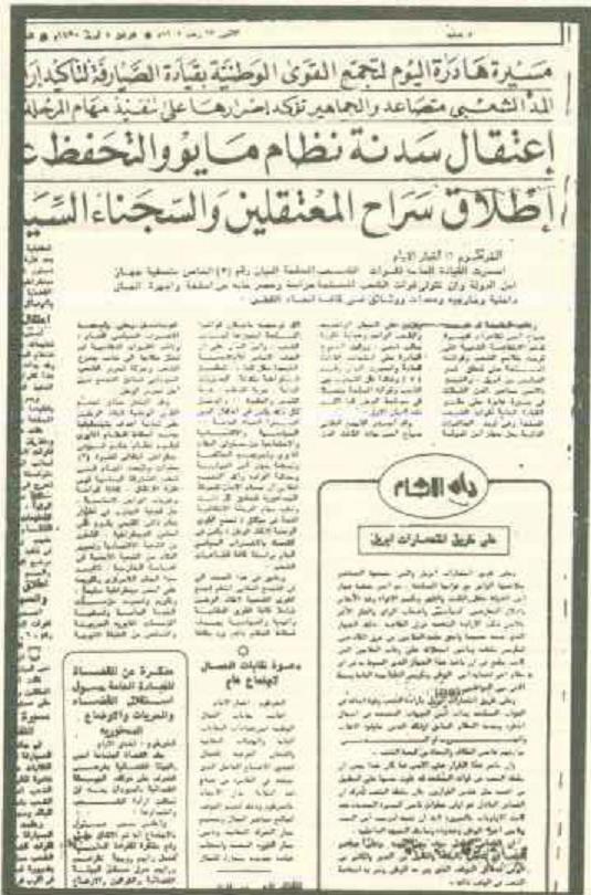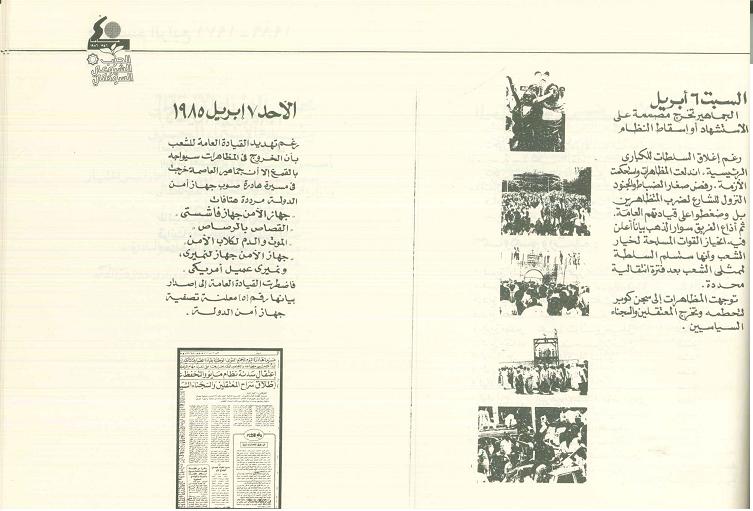 وهناك أسئلة عدة يجب ان تثار تتعلق بانتفاضة ابريل ولابد من تمليكنا الحقائق نحن الجيل الذي لم يعايش الثورة من كل مايملك دليل ممن عاصر تلك الفترة...نريد ان نعرف...