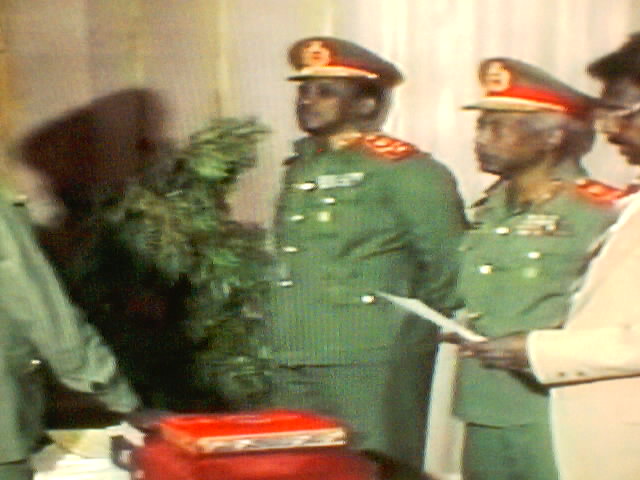 في شنو؟؟؟استاذ قسم الله معاهو المعلمين جنب مكتب المدير خاتين الرادي في نصهم ، سمعتو قاليهم الحكومة انقلبت ،لم نرفع حاجب الدهشة الاعندما اردف قائلا:وكمان المدير قاليهم الليله ما تخلسوا من الطلبة ريال السبت ...وعندها احتفينا علي طريقتنا الخاصة من طلوع فوق الكنب والشبابك مصحوبا بالصياح الطفولي البرئ ليس بابريل طبعا ولكن بالاعفاء من ريال السبت لان ذلك يعني لنا في ذلك الوقت(شراء الفول والطعمية والتسالي) من حاجة أم هانئ القابعة امام باب المدرسة بعد افكونا للفطور....