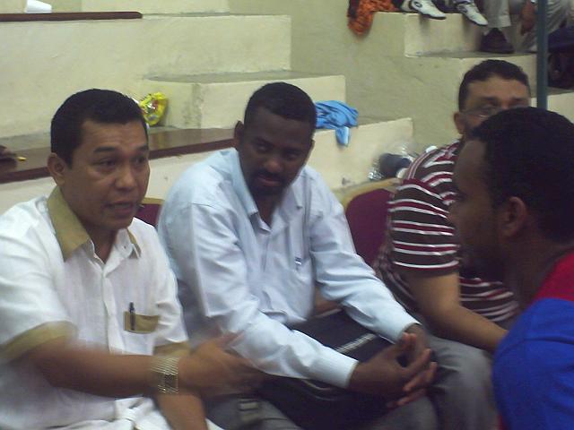 ومتابعة ممتعة للمباريات ضمن دوري الطلاب السودانيين بالجامعات الماليزية من الشمال لليمين: السيد / زمراوى ومدير تادي سلانقور والسيد السفير