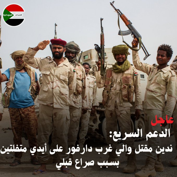 الدعم السريع يريدون الصاق تهمة اغتيال الوالي للمتفلتين ومع ان العالم اجمع قد شاهد اعتقال الوالي بواسطة ضباط كبار فى الدعم السريع الدعم السريع يريدون التبرؤ من دماء الوالي خوفاً من القادم :