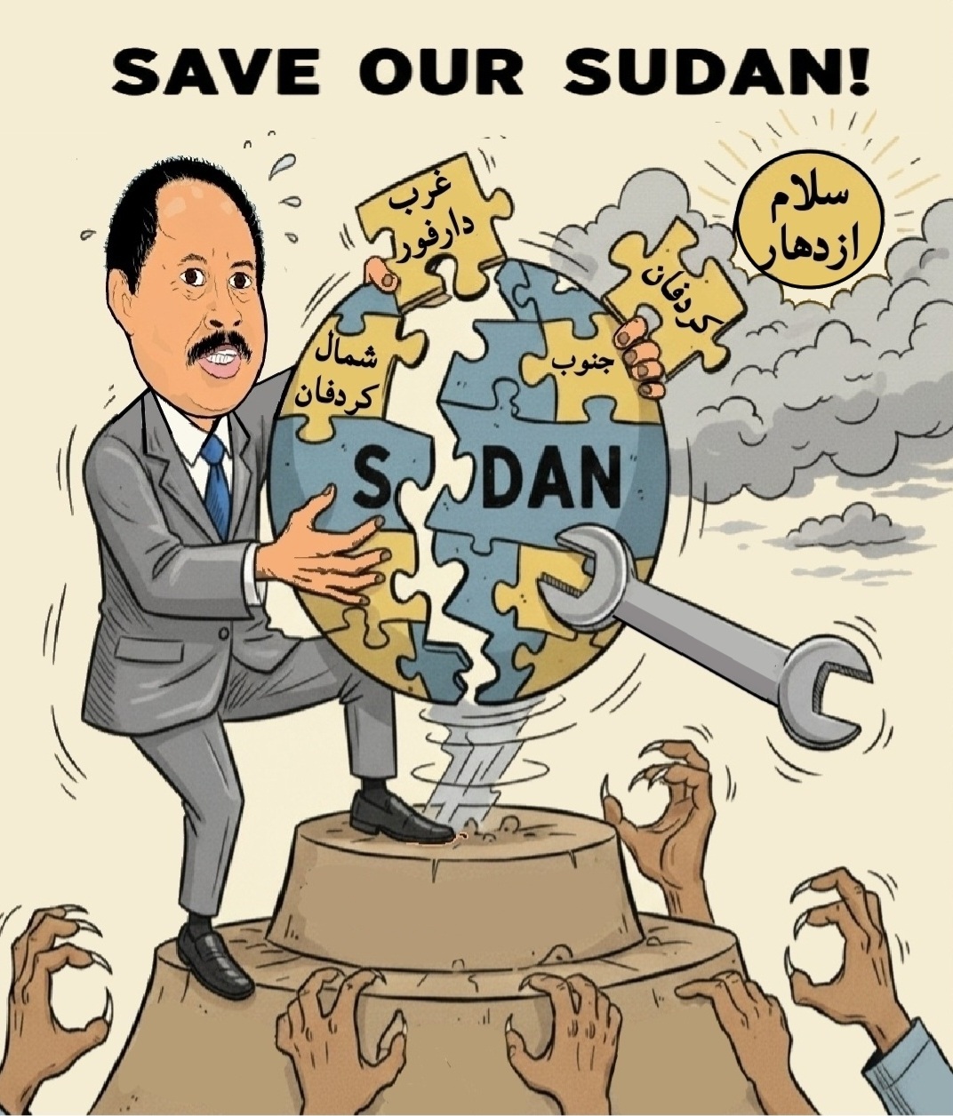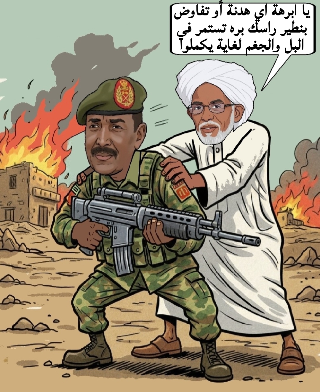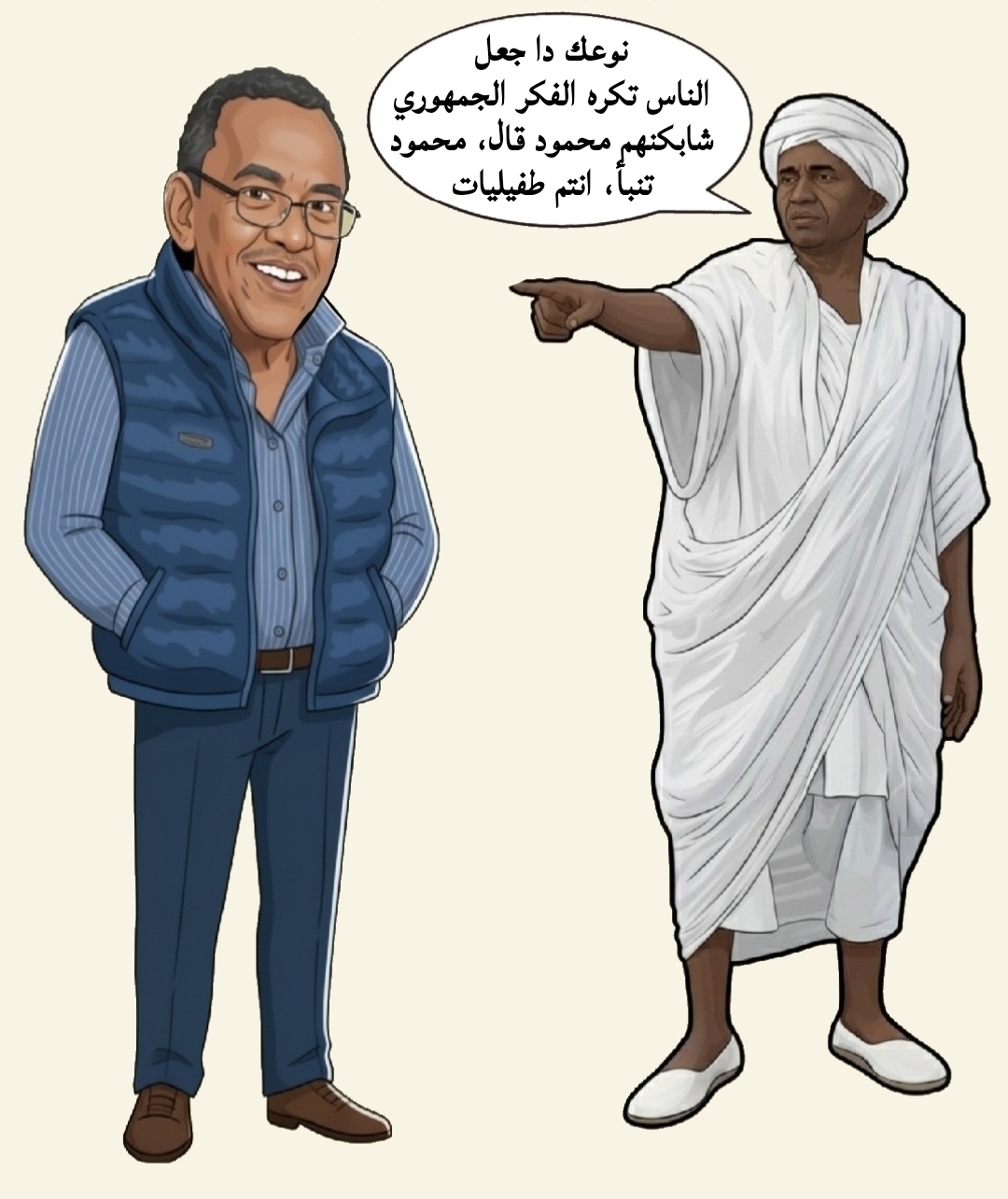 يا عارف سلام خلاس انا برنامجي ارجع الجنوب والسمكرة من نمولي، لي، حلفا تفصل لي، جلابتي، حسب، مقاسي وطلبي، الدايرو سودان1956 لازم. يرجع، وده من هتافات الثورة الليلة ما بنرجع الا الجنوب يرجع بوظوها بعاعيت مايو1969 وايتام الترابي ودي مشاريع مصرية. ما تلزمنا في، السودان
